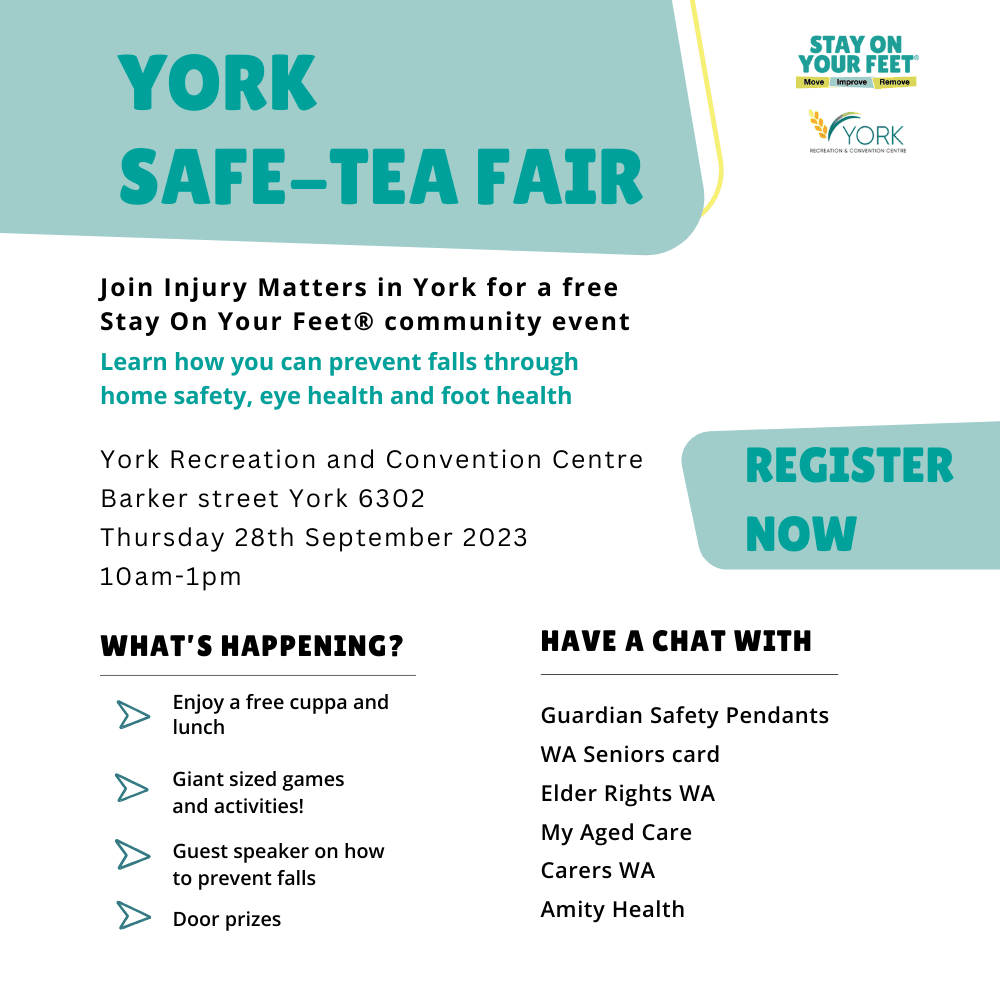 Join us for the Stay On Your Feet® York Safe-Tea Fair! For more information contact Shaan at [email protected] or 6166 7688.